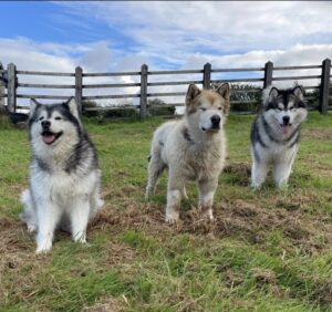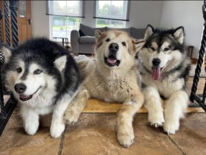 Teddy the Husky lives with his brother, Phil, and sister, Niko, both Malamutes, and his feline brother, Milo, who believes he’s also a Malamute. They also live in the house with their human parents, and human sister, Amelia.