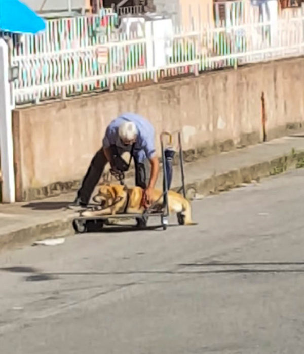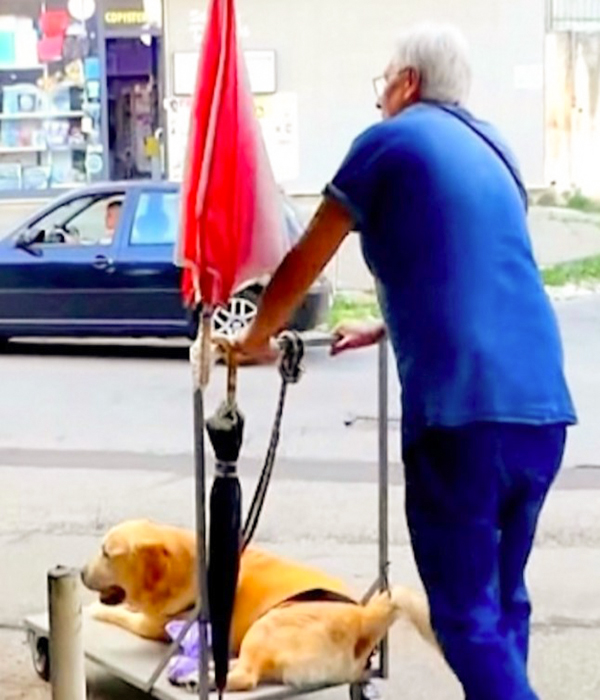 Loving Man ‘Walks’ Elderly Dog With Arthritis In Cart Everyday To Ease Its Sadness
