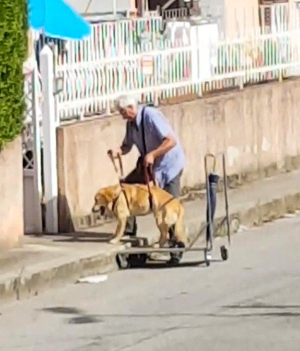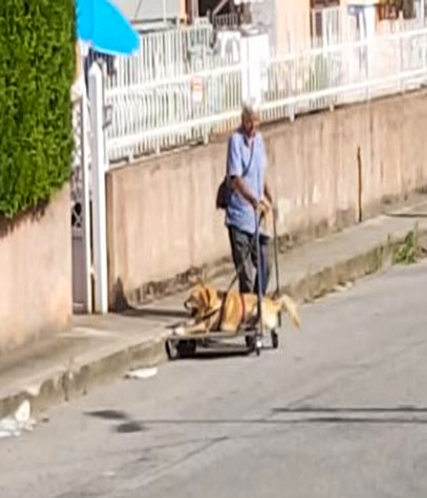 Tonino worried that he would become depressed and lose his will to live and knew he had to do something to help his best friend. One day, he decided to build him a cart so that he could take him out for walks every day.