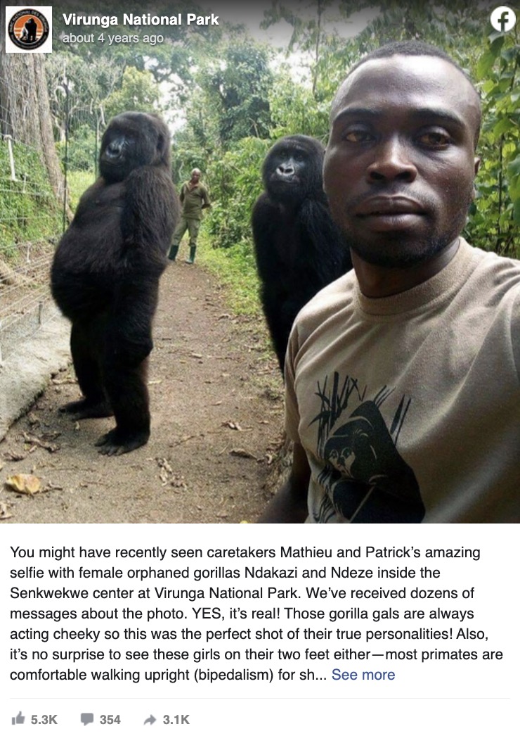 Ndakasi was seen with her loved ones in a sweet selfie that the park released in 2019.
