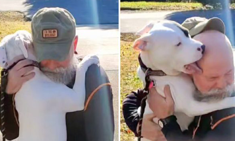 Overjoyed Fostered Pit Bull Can’t Stop Kissing And Hugging Her New Dad!