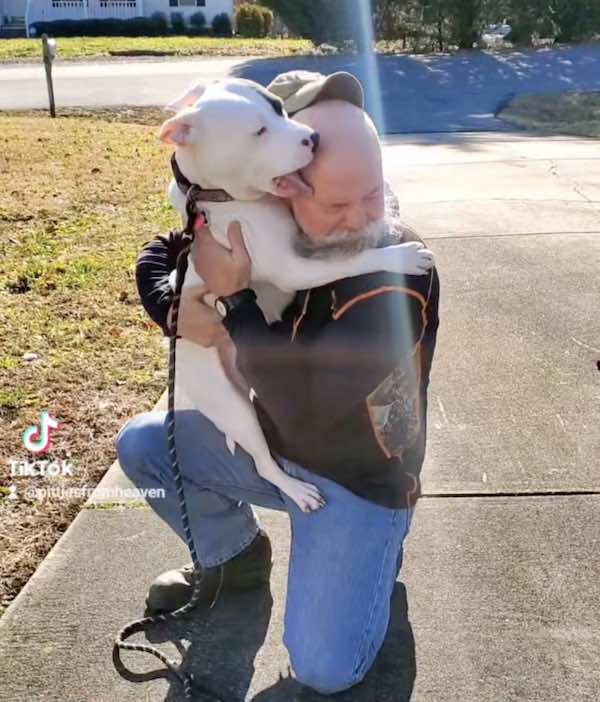 Maggie met her new father for the first time at the Pitties From Heaven Rescue Center in South Carolina, and it was as if they’d known each other for years. Maggie jumped on her new father and couldn’t stop kissing and hugging him.