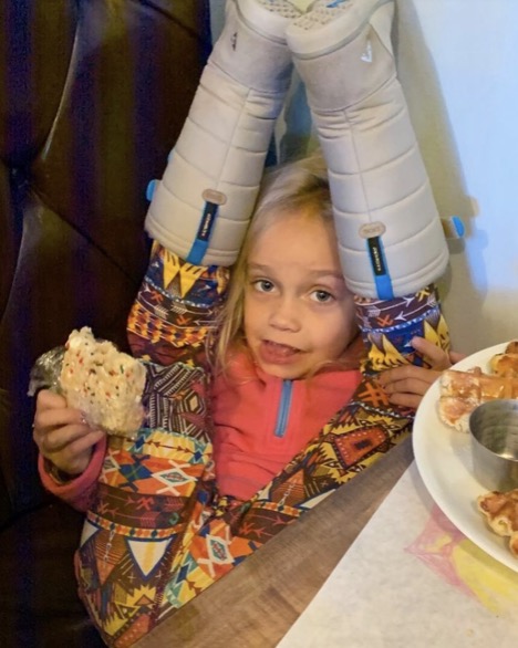 Goldie was having lunch with Rio when she snapped the picture. She captioned it, “Christmas lunch in Aspen with a chip off the old block! Happy upside down lunch to everyone everywhere.”