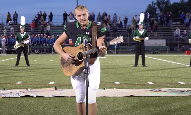 A high school boy grabbed a guitar and started singing the national anthem, since no one else wanted