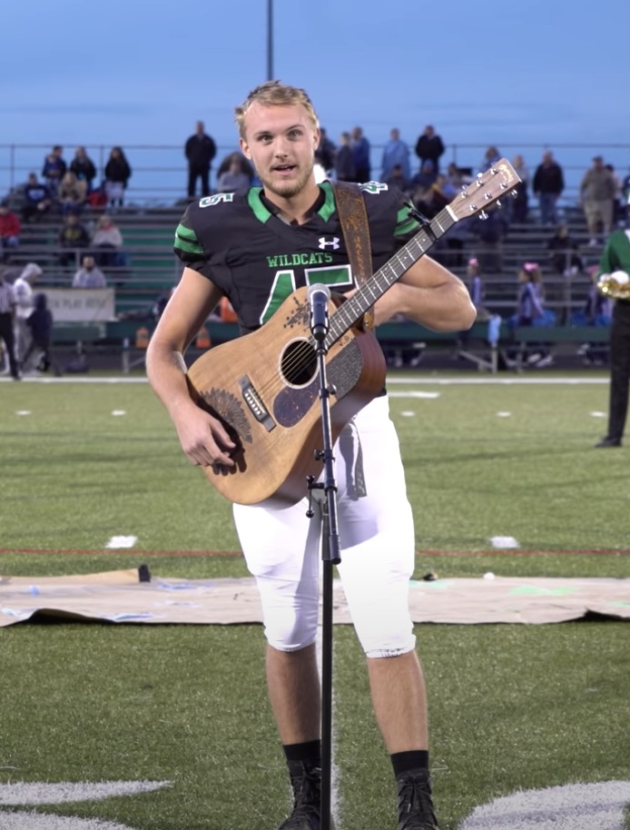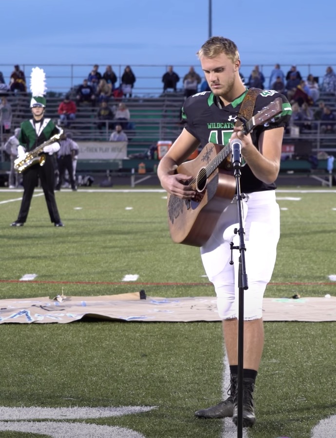 Since Nicholson realized that the singing of the national anthem was not prepared from anyone, and couldn’t let the school play a recording over the loud speakers, or even the crowd itself, he had only one decision.