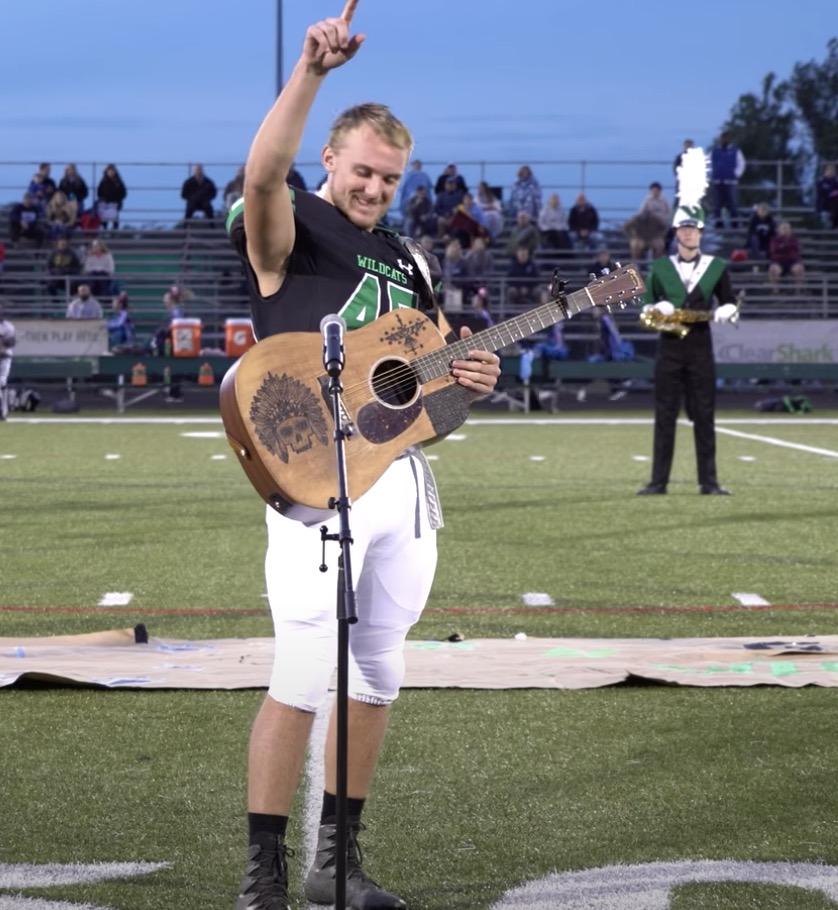 A high school boy grabbed a guitar and started singing the national anthem, since no one else wanted