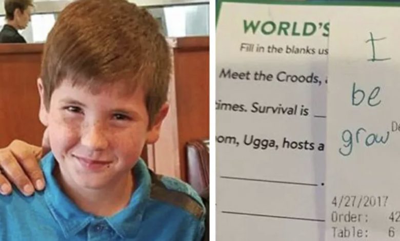 His mother Amanda waved over the waitress and told her about the plan. After they paid Eddie’s bill, Noah wrote down a message on the receipt.