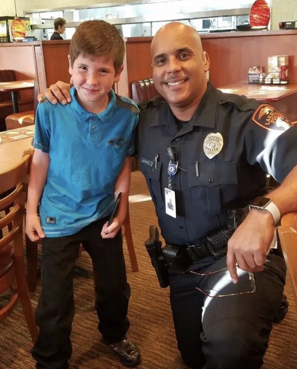 9-year-old Noah was having breakfast with his mom at Denny’s when he saw a police officer sitting on his own at a nearby table.