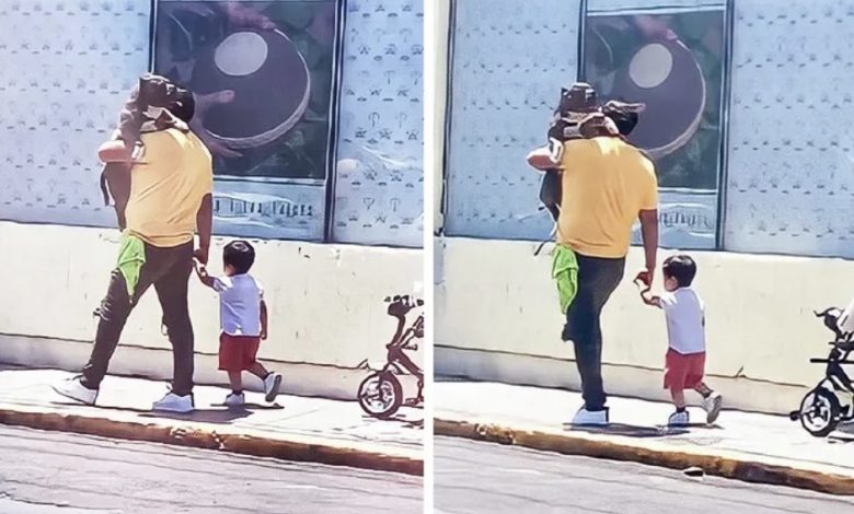 “He is (showing) a lot of empathy and responsibility for his pet and his son because he takes him by the hand. a thousand blessings.” Writes one person. Another, relating to this father’s love for both the child and dog, adds: “Super dad. I would have done the same. Kid has shoes on and the doggy doesn’t. It looks hot too. Plus his mom was there maybe he wanted to walk,”