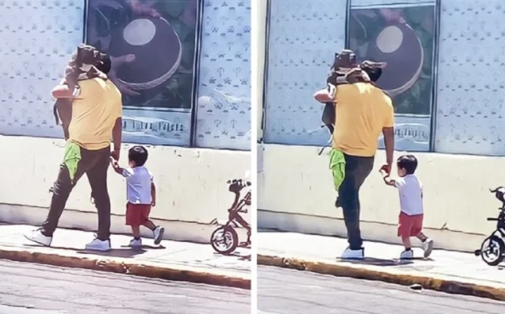 “He is (showing) a lot of empathy and responsibility for his pet and his son because he takes him by the hand. a thousand blessings.” Writes one person. Another, relating to this father’s love for both the child and dog, adds: “Super dad. I would have done the same. Kid has shoes on and the doggy doesn’t. It looks hot too. Plus his mom was there maybe he wanted to walk,”