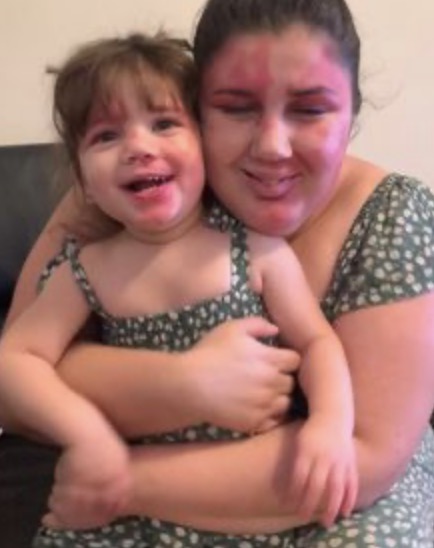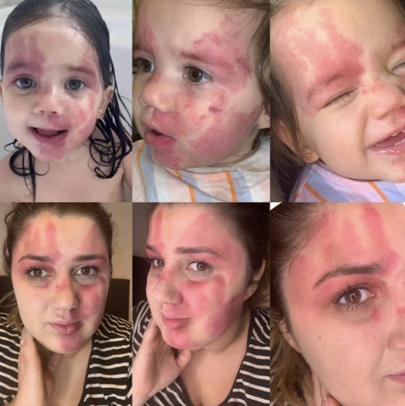 Recently, the 27-year-old mother decided to use makeup and paint a copy of 5-year-old daughter’s birthmark on her own face.