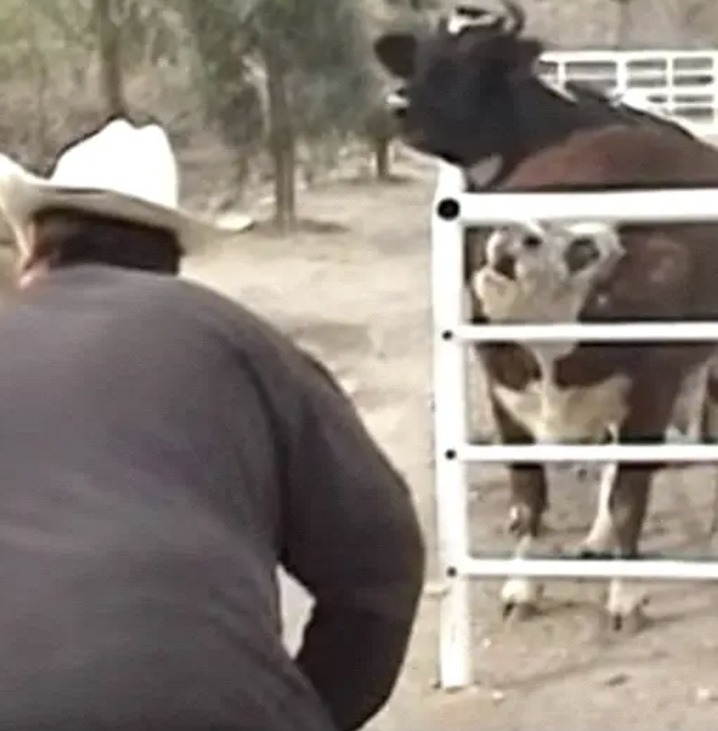 A grieving cow, having lost her calf, cries continuously, then she can’t proceed what she is looking through the gate