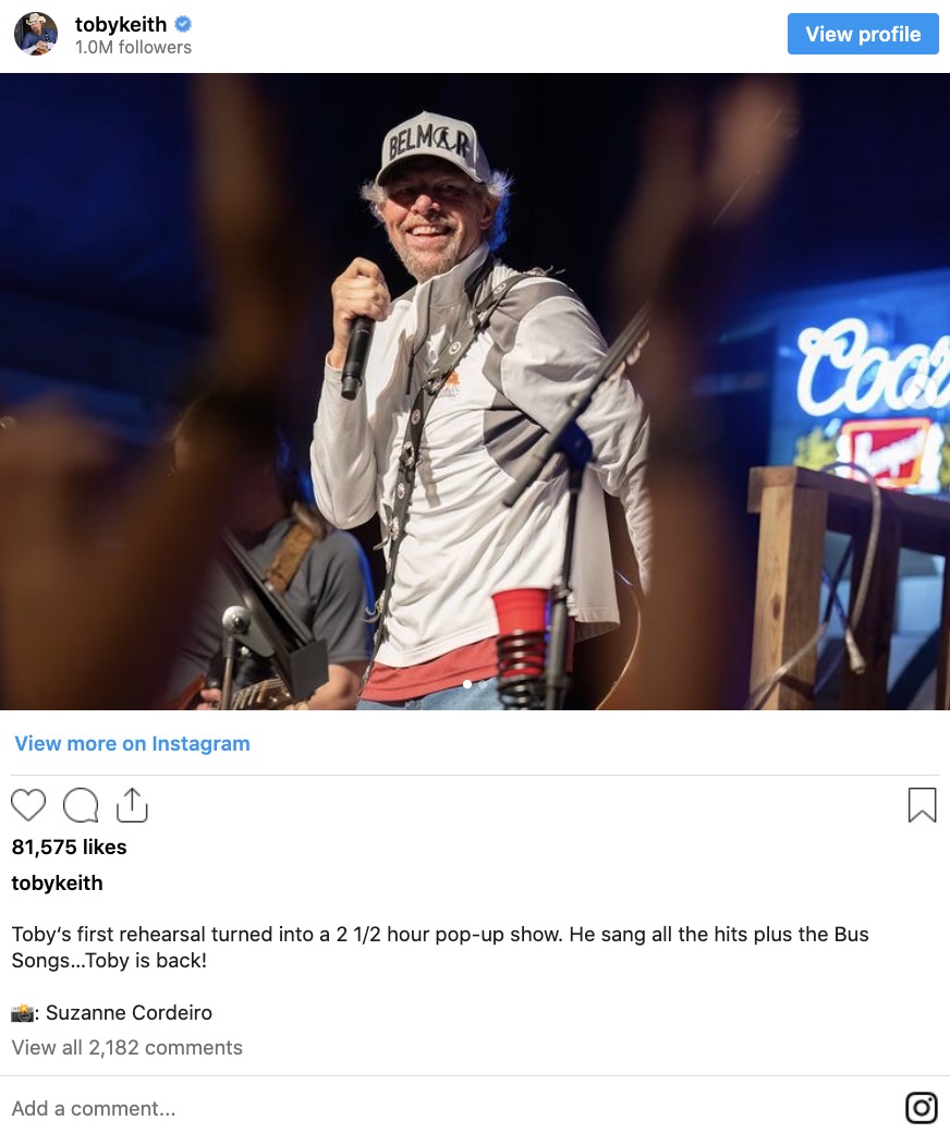 Toby Keith was asked why he decided to sing that specific song. “Well, mainly because I’ve been going through my cancer fight for the last couple of years and it’s really inspiring for a lot of people. And coming back on TV for the first time and performing live in front of a live audience, I thought it was fitting,” he said.