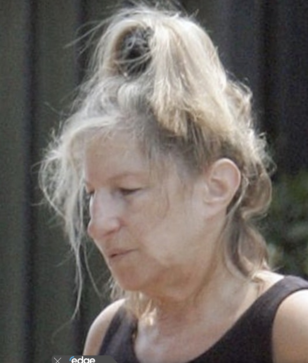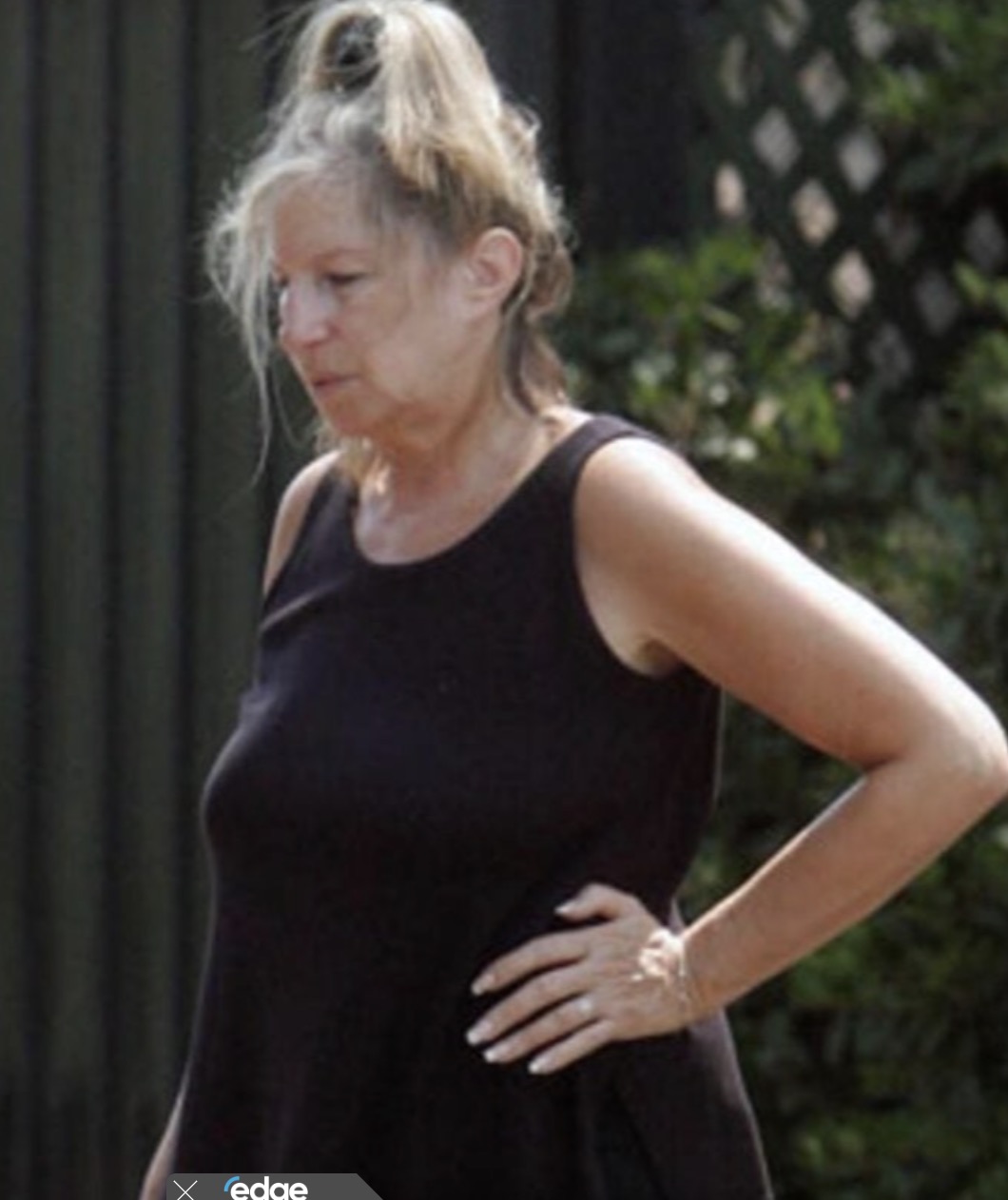 The legendary actress and singer Barbra Streisand was recently photographed at her residence by the paparazzi when she appeared unprepared for their presence. In these candid photographs, Barbra Streisand appeared without makeup, with her hair pulled back in a basic ponytail, and with a few gray hairs visible.