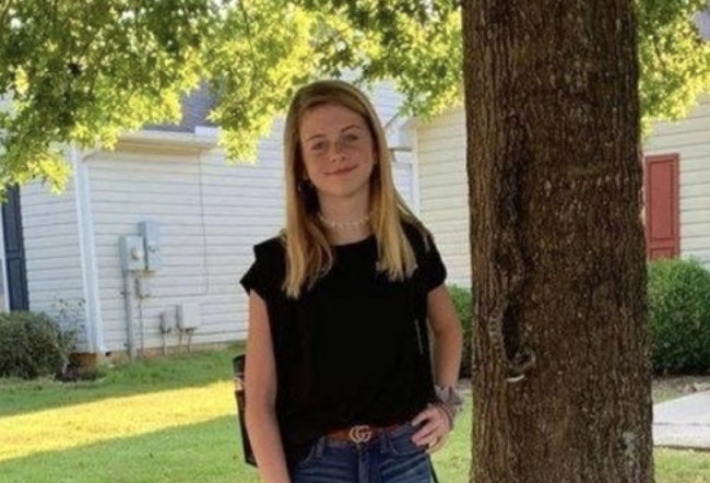 She walked outside with her mother on the first day of seventh grade to take a picture.