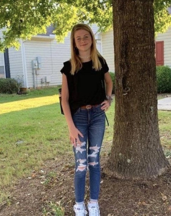 She walked outside with her mother on the first day of seventh grade to take a picture.