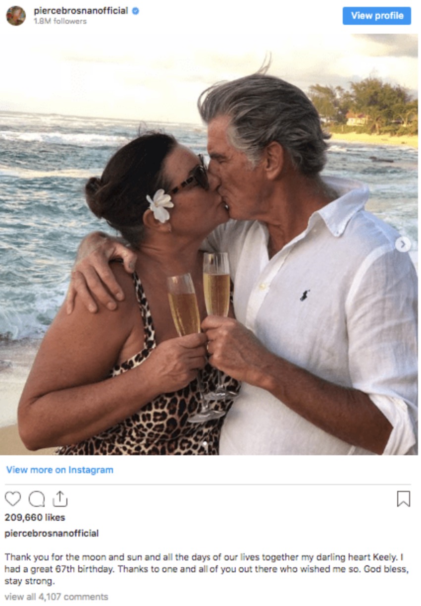 For example, In 2021, Brosnan took to Instagram and wrote a touching post to his wife to celebrate her 58th birthday: