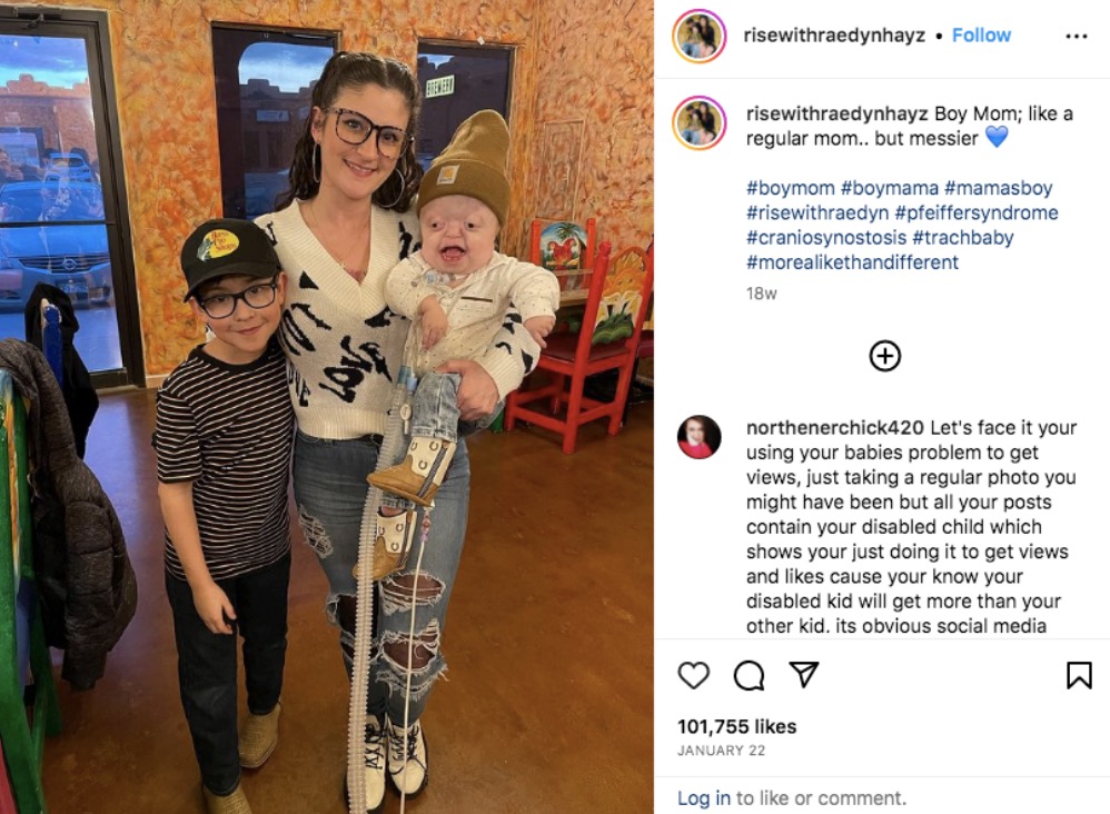 She and Raedyn’s online antics are documented in videos shared on the popular app TikTok. She also gets hundreds, if not thousands, of comments a day asking her to stop sharing her son’s photos and videos.