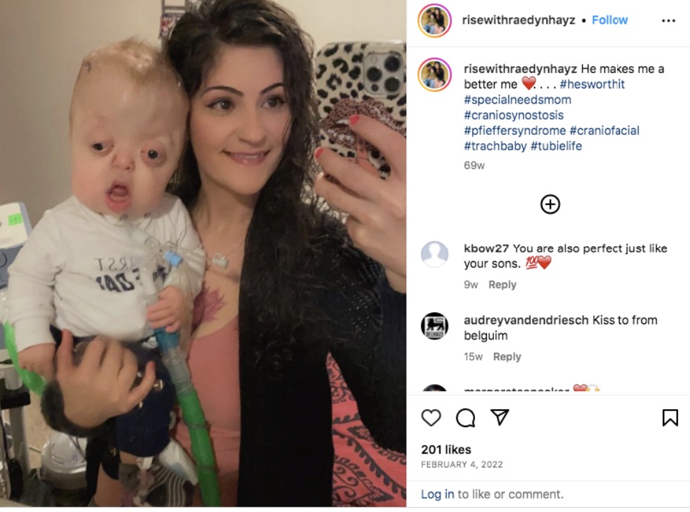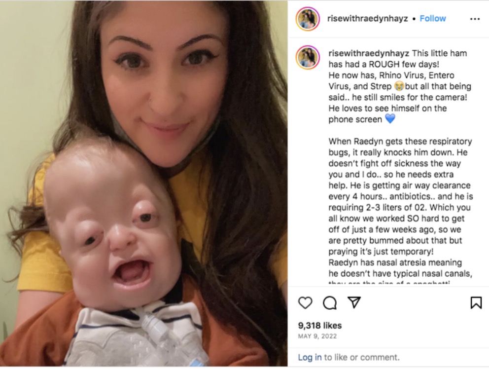 Young Raedyn was born with Pfeiffer syndrome, which causes skeletal, facial, and craniofacial malformations. Natasha, on the other hand, is convinced that her son has no flaws, so she posts videos of him online whenever she can.