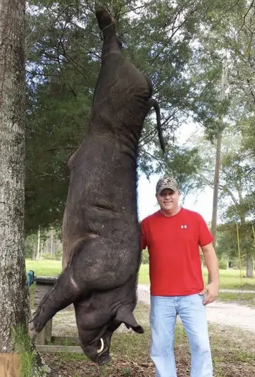 In a shocking encounter, Wade Seago from rural Samson, Alabama, found a massive 820-pound feral hog right outside his home.