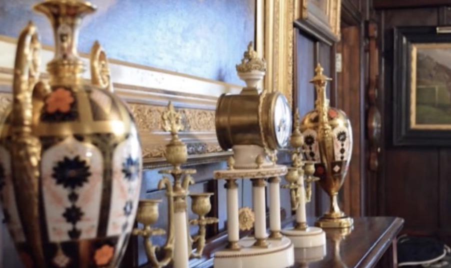 Original paintings on the walls, antique furniture with gold inlays, and new tools.