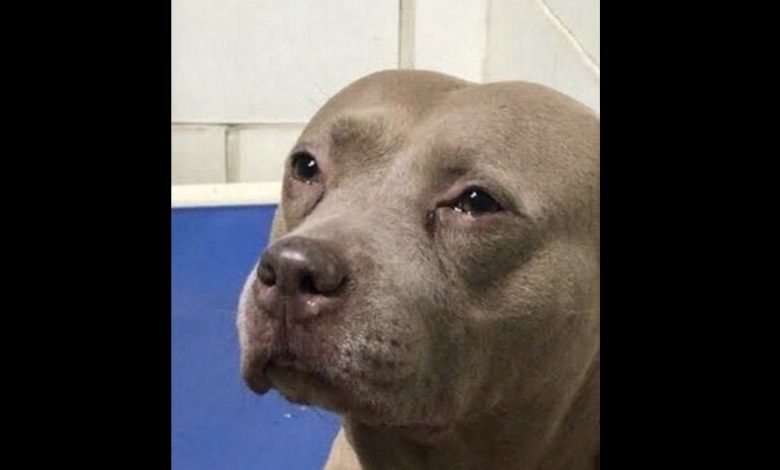 Depressed pit bull filmed ”crying” at shelter after being used for breeding then dumped
