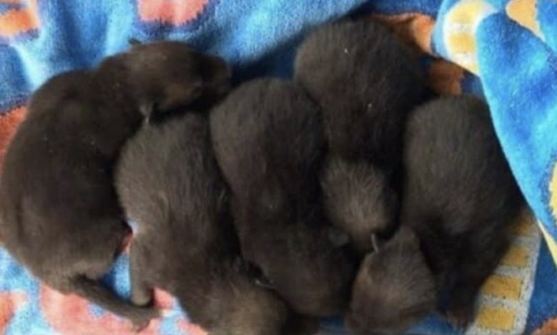 As he lifted an old mattress to dispose of it, he found what he thought were five little puppies or kittens lying underneath it.