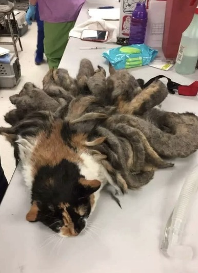 Hidey was in terrible shape when they discovered it wandering the streets. Despite the perception that cats are independent, several breeds require routine grooming. Hidey was neglected for years by her owner who was unable to groom her. Her matted fur initially led rescuers to mistake her for an alien-like species.