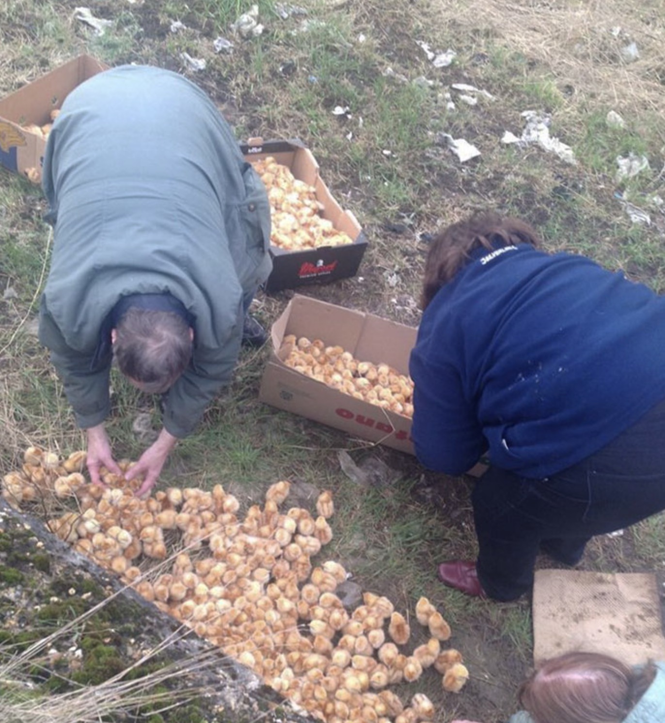 He decided to take a step and approach them, to see what they are. When he got close he had a shock! What he thought were tennis balls were actually a lot of live chicks, which hadn’t been out of the egg for more than a day.