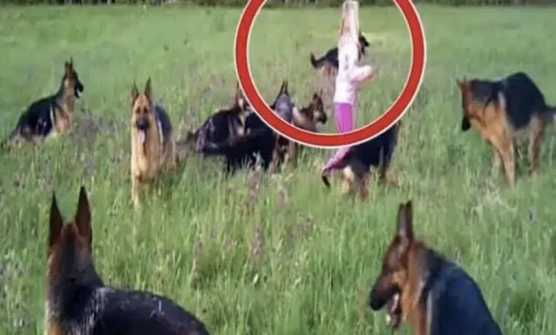 A young girl was surrounded by 14 dogs. The moment the girl raised her hands to the skies, a miraculous event took place.
