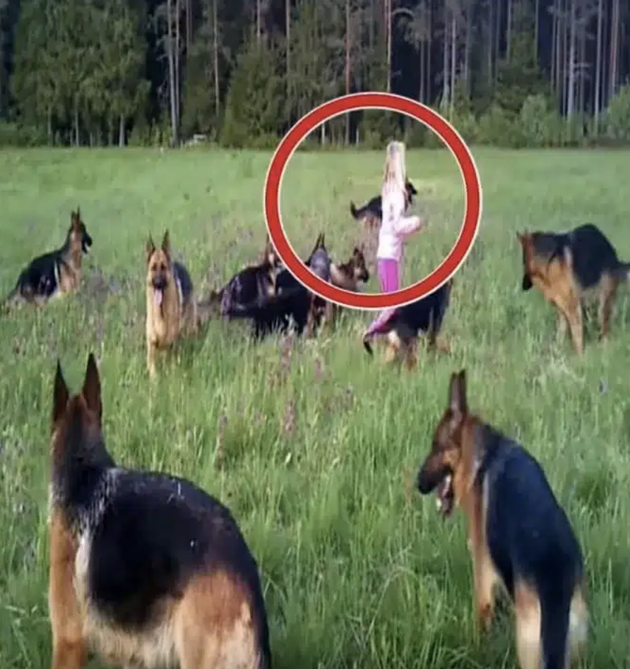 A young girl was surrounded by 14 dogs. The moment the girl raised her hands to the skies, a miraculous event took place.