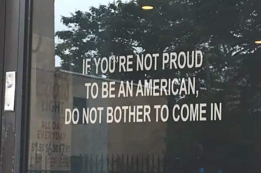 The Controversial Sign in a Local Bar: A Debate on Patriotism and Inclusivity