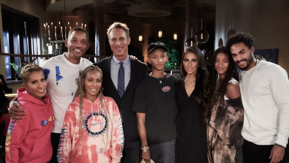 Facebook’s “Red Table Talk” — L – R: Adrienne, Will, Dr. Hyman, Jaden, Mona, Willow, and Trey (Michael Becker)