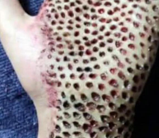 These wounds often present as several puncture marks on the arms or hands. The majority of insect depictions feature a back covered in many tiny tubes.