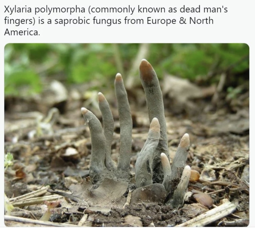 This intriguing fungus owes its macabre name to its peculiar appearance. The fungus sports swollen, blackened protrusions, eerily resembling fingers that seem to be reaching for the sky, as if someone buried beneath the forest floor is striving to break free.