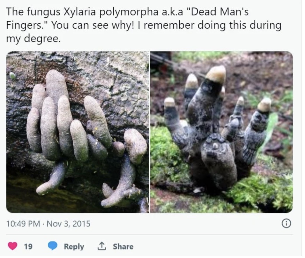The photo soon took on a viral life of its own, its popularity driven by its unnerving resemblance to a dead man’s leg. However, upon a closer look, it was revealed to be a unique fungus, intriguingly named Dead Man’s Fingers (Xylaria polymorpha).