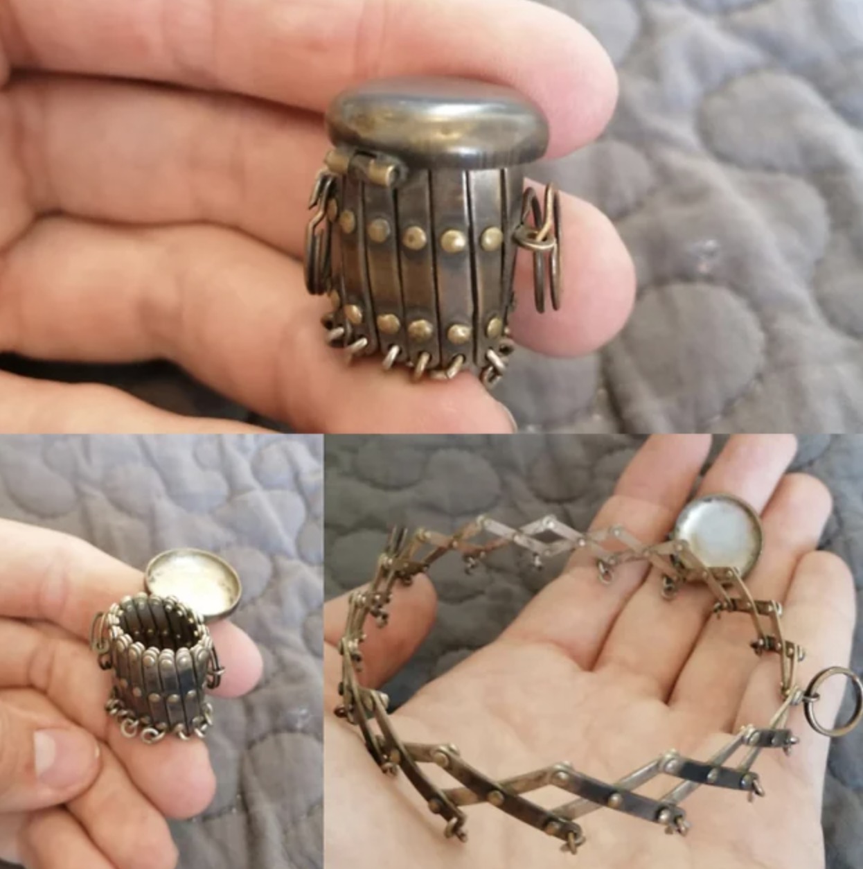 A social media user shared what appeared to be a metal circle the size of a soda cap, which could retract into a bracelet. Baffled, the person sought the help of Reddit users to identify the object.