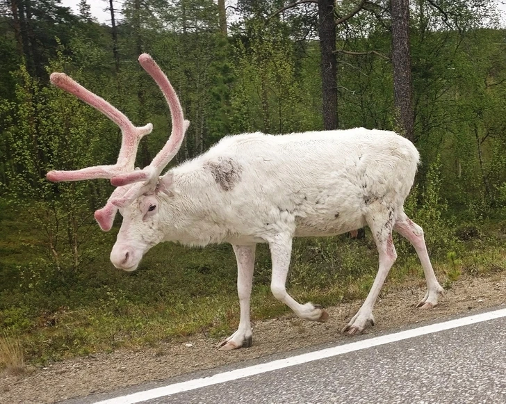 13. “This albino reindeer I saw while traveling in Finnish Lapland.”