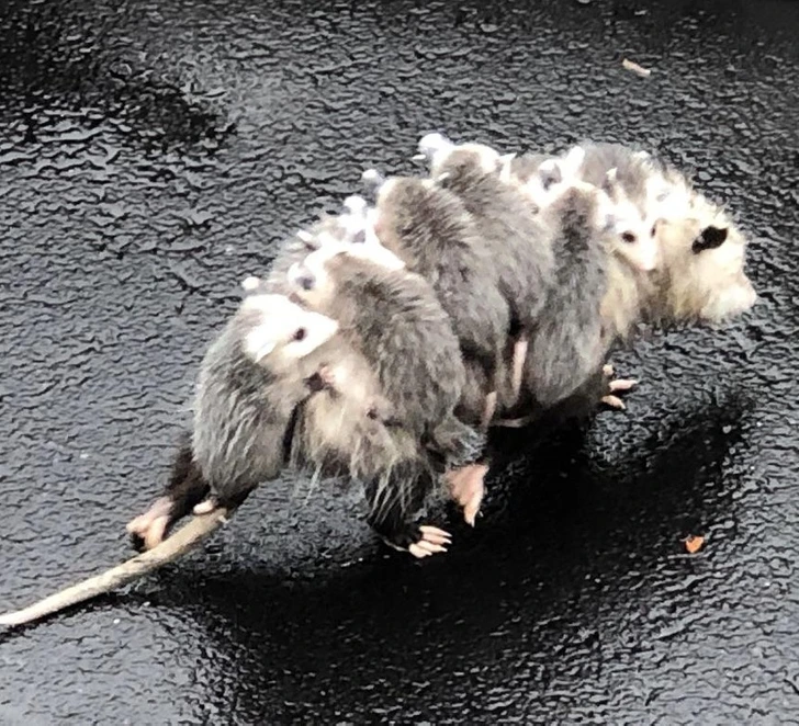 5. “Look what my mom spotted. Who knew this is how possums transport their babies?”