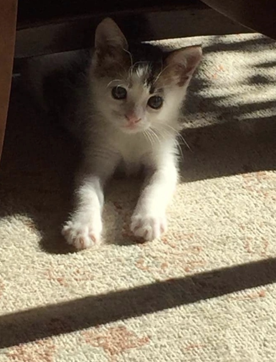 First, she was found in 2016 in a dumpster after a passerby heard her soft meowing coming from inside.