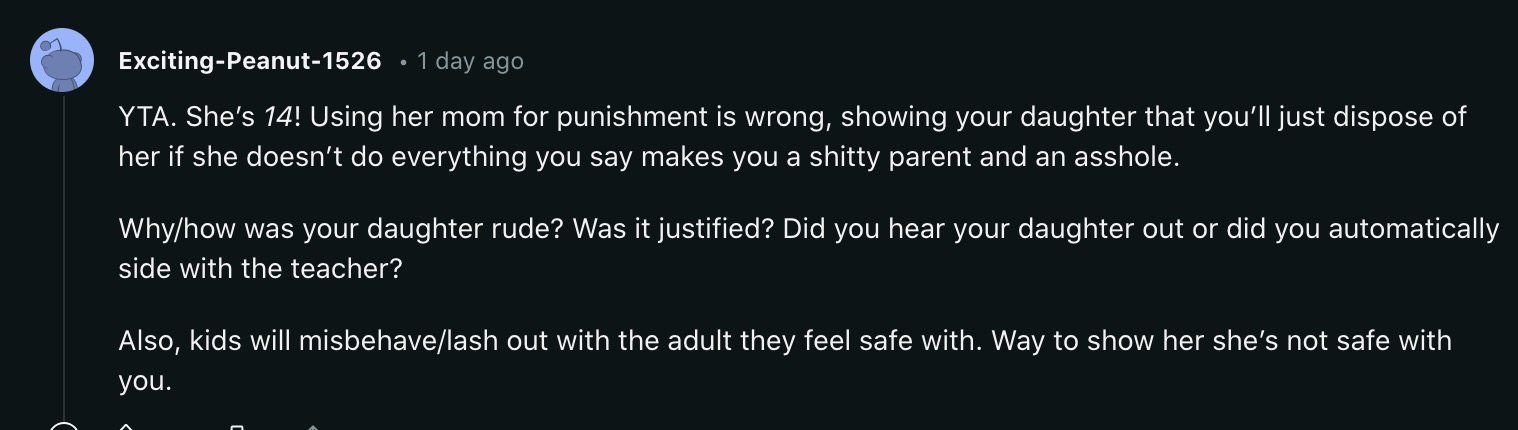 4 days ago my daughter(14) and I got into a fight, basically she was rude to her teacher and refused to apologize because “that bitch deserved it”. We got into a fight over this and she yelled that she hates me and wishes I was dead…