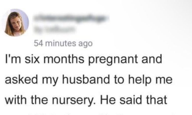 When the woman reached the sixth month of her pregnancy, she asked her husband if he could be around more and help her prepare for the child they expected to welcome.