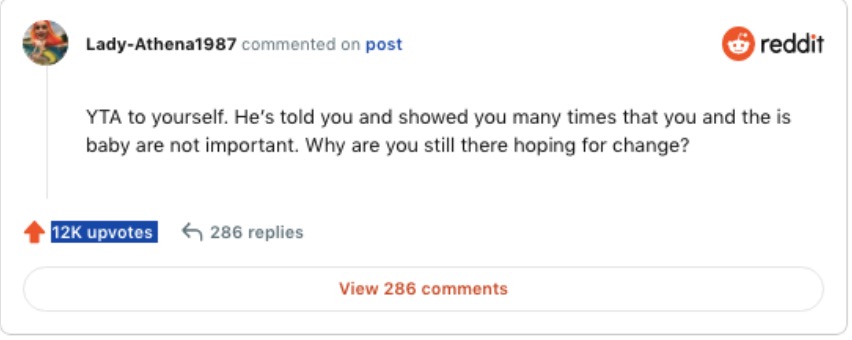 A Reddit user asked others on the platform if she was being unreasonable in issuing an ultimatum to her husband, who had been largely absent for much of her pregnancy. She soon learned how dire her situation was.