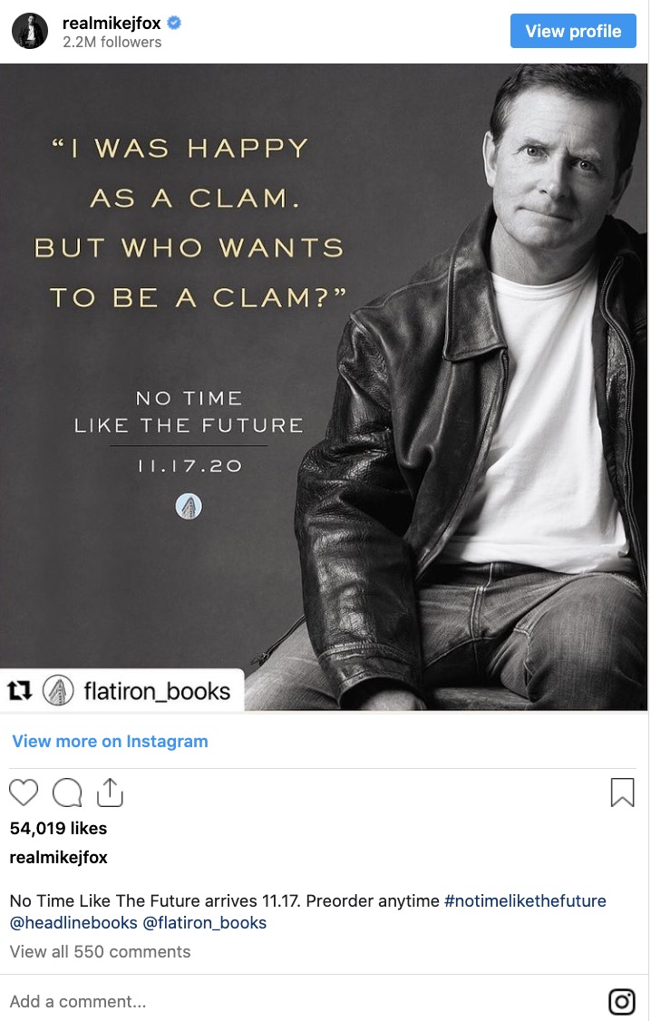 The actor has written four books, Lucky Man: A Memoir (2002), Always Looking Up: The Adventures of an Incurable Optimist (2009), A Funny Thing Happened on the Way to the Future: Twists and Turns and Lessons Learned (2010) and his fourth, No Time Like the Future, released on November 17, 2021.