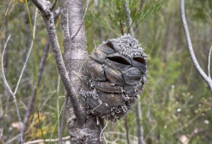 It was a cute banksia pod that looked like a smiling bird. These pods grow out of banksia threes.