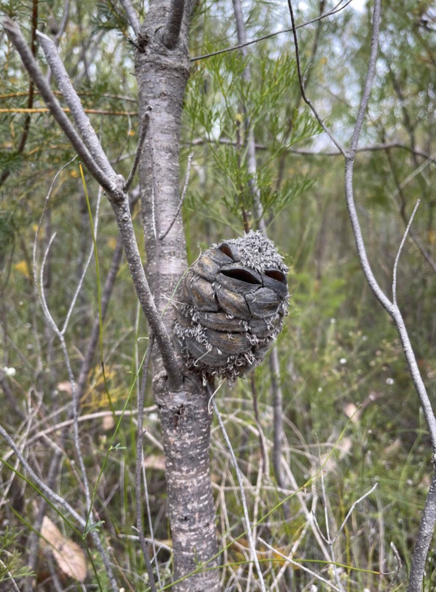 It was a cute banksia pod that looked like a smiling bird. These pods grow out of banksia threes.