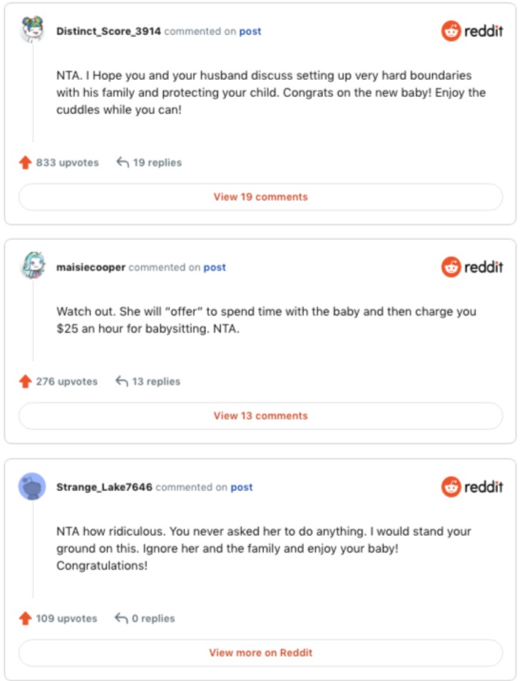 Feeling deeply upset by the entire situation, the woman found herself at odds with her husband’s suggestion. He proposed paying his mother to quell the extended family’s criticism and allow them to focus on their new roles as parents. However, the woman staunchly opposed the idea of compensating his mother for her actions.