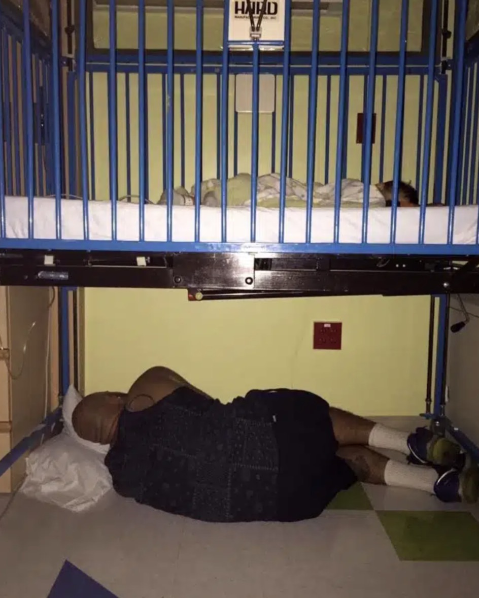 When he arrived, his baby was sleeping happily in his crib and his tired wife was resting in a nearby chair. Despite his fatigue, the revered father preferred to sleep next to the cradle rather than in it out of respect for his wife’s comfort.