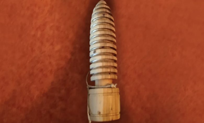 Amidst a collection of items, a woman discovered a large wooden object with grooves and a hole. Initially mistaken for a part of a grain mill, the Reddit community identified it as a wooden Christmas tree crafted by someone practicing woodturning.