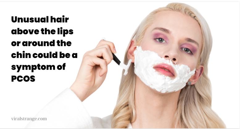 Unusual hair growth around the chin or above the lips can be a symptom of PCOS (polycystic ovary syndrome: when ovaries grow because of a hormonal imbalance.